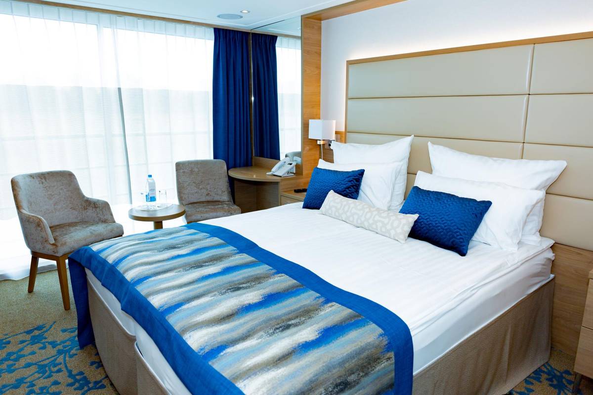 Unser Deluxe-Schiff, seit 2018 in Dienst, bietet ein modernes, stilvolles Ambiente. Das weitläufige Sonnendeck lädt mit bequemen Liegen und Outdoor-Möbeln zu herrlichen Ausblicken ein. Panoramasalon mit Bar, elegantes Restaurant und ein Wellnessbereich mit Pool, Sauna und Fitness bieten hohen Komfort. Die großzügigen Kabinen, meist mit französischem Balkon, sowie das freundliche Personal und die exzellente Küche machen Ihren Urlaub perfekt.