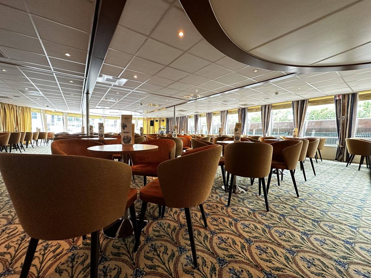 Das große Sonnendeck lädt mit modernen Outdoor-Möbeln, Liegen, kleinem Whirlpool und Sonnenschutz zum gemütlichen Verweilen ein. Zum Essen erwartet Sie unser schönes Panorama-Restaurant. Das Schiff verfügt über eine großzügige Panorama-Lounge mit Bar und Tanzfläche, Bücherei mit Leseecke, Foyer, kleinen Bordshop an der Rezeption und einen Wäschereiservice.