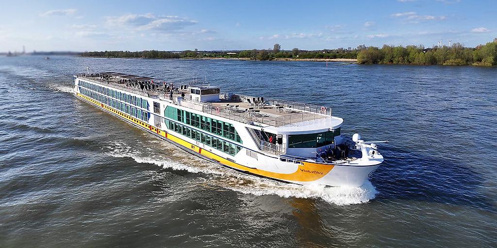 MS VistaSky bietet auf dem Rhein eine niveauvolle Atmosphäre mit hochwertiger Ausstattung, ergänzt durch klassische Kreuzfahrtelemente. Auf drei Passagierdecks erwarten Gäste elegante Räumlichkeiten. Das großzügige Sonnendeck mit Liegen und Sonnensegeln, die Panoramalounge mit Bar, das lichtdurchflutete Restaurant und die gemütliche Hecklounge schaffen ideale Orte für entspannte Stunden.